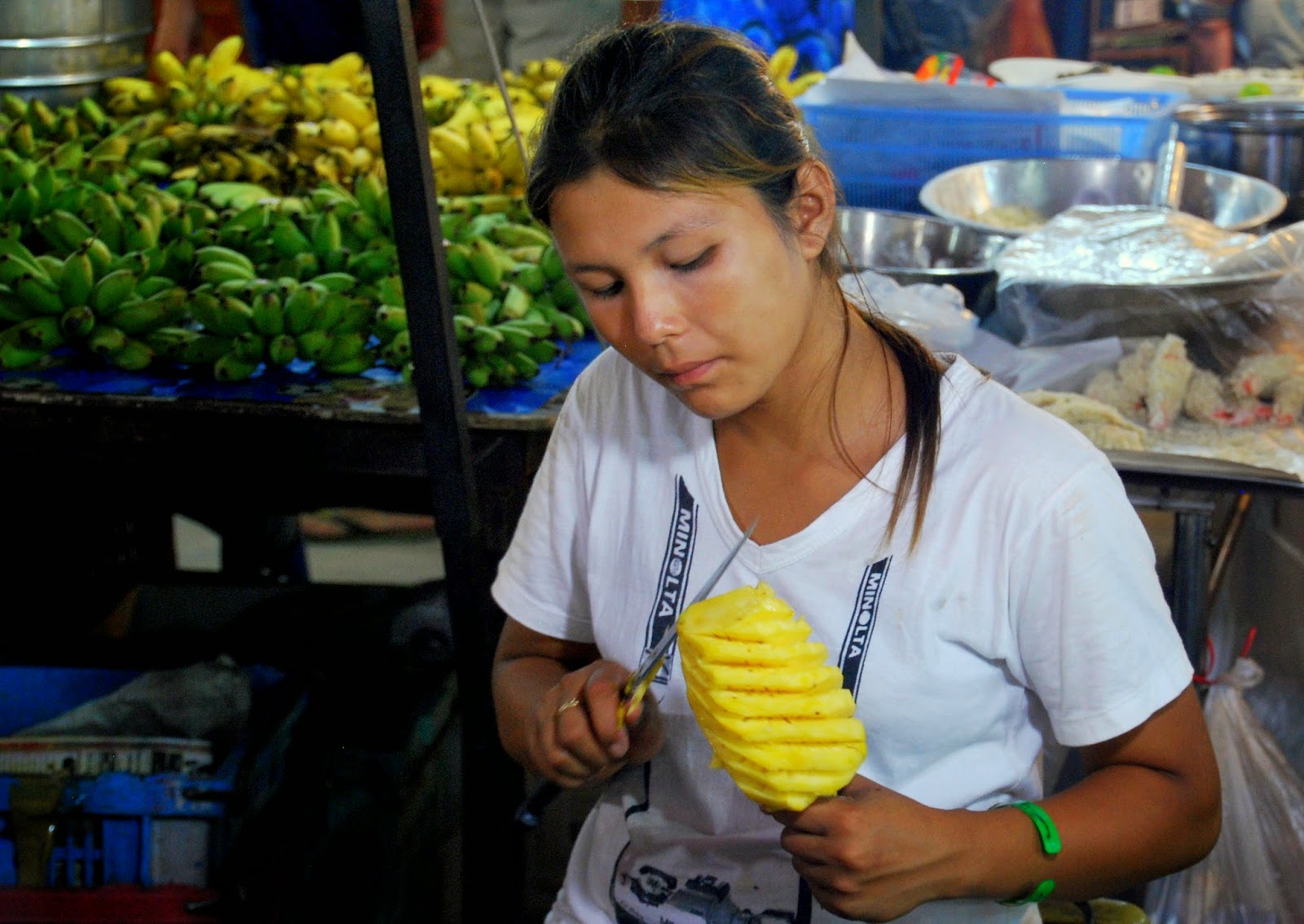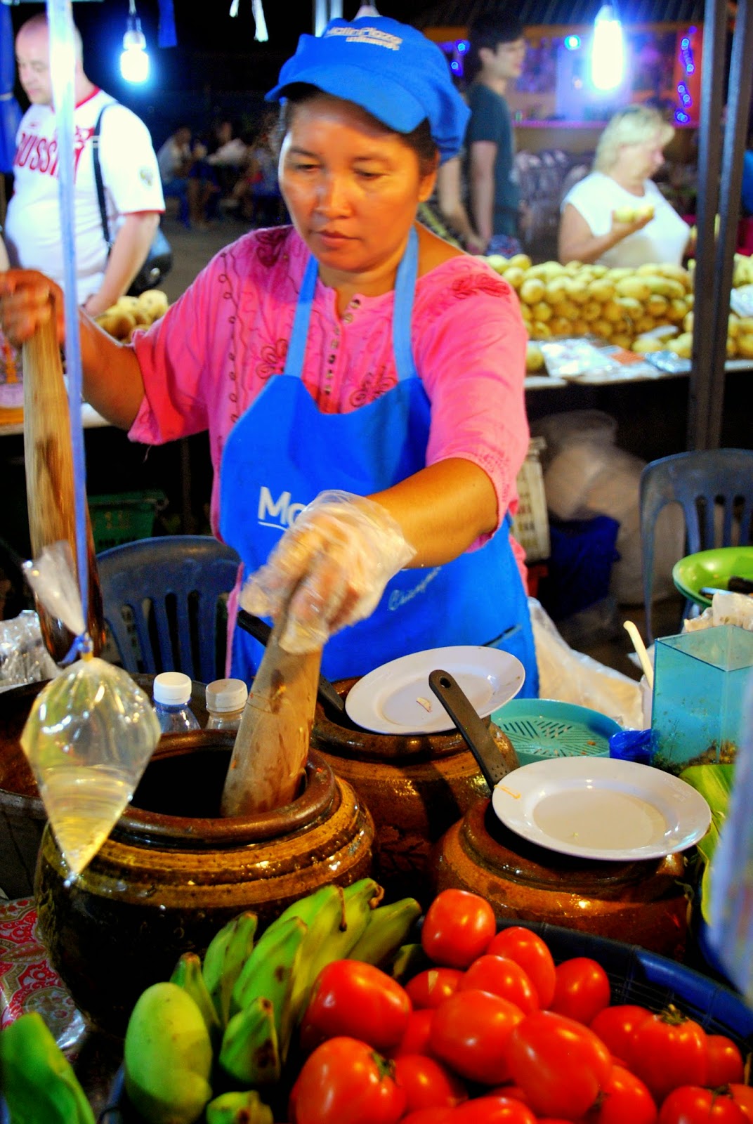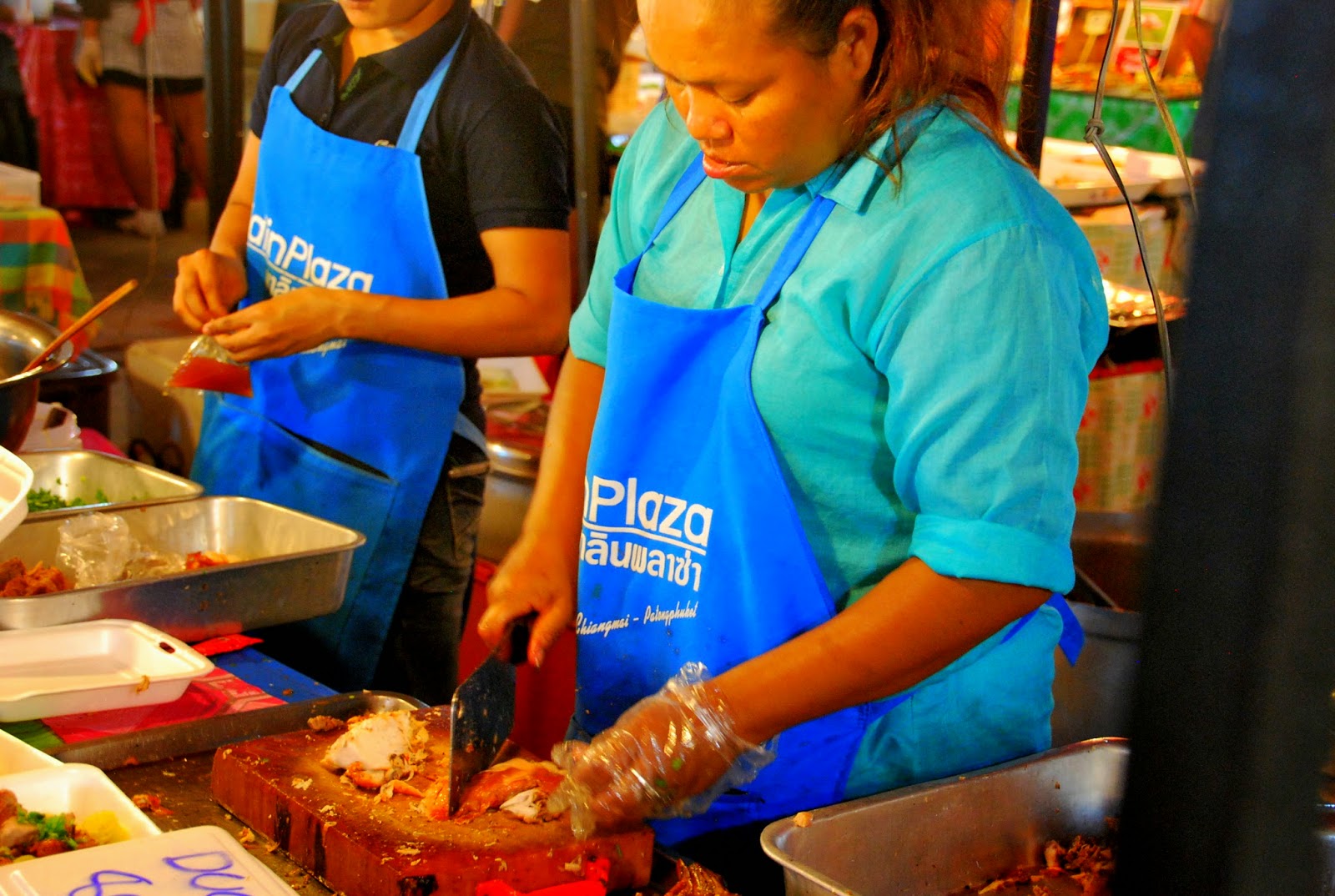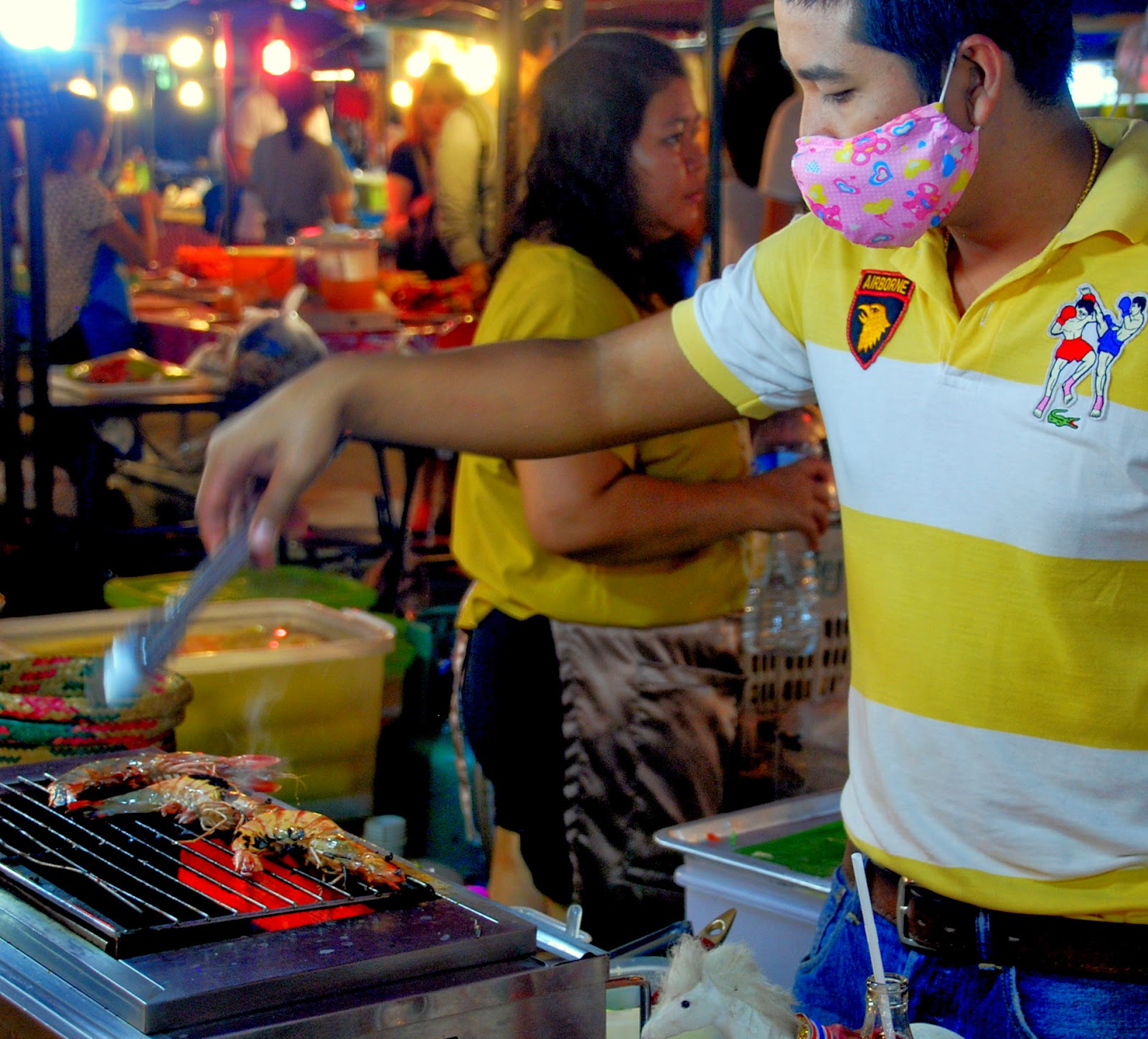 Auf den Märkten tummeln sich Thais um das Essen für ihre Familien zu kaufen und etliche Urlauber. Grillspieße liegen aus, frisch gefangener Fisch liegt auf Eis, Früchte in allen Farben, Gewürze. Es gibt nichts, was es hier nicht gibt. Selbst einen Stand mit Sushi habe ich gesehen. Nachdem man sich für etwas entschieden hat, bekommt man es frisch zubereitet. Das Fleisch und der Fisch brutzeln auf dem Grill und werden anschließend nach Wunsch gewürzt. Anschließend wird es verpackt und kann gut mitgenommen werden. Auch viele Sitzgelegenheiten laden zum Verweilen an und so probiert man sich von Stand zu Stand.
