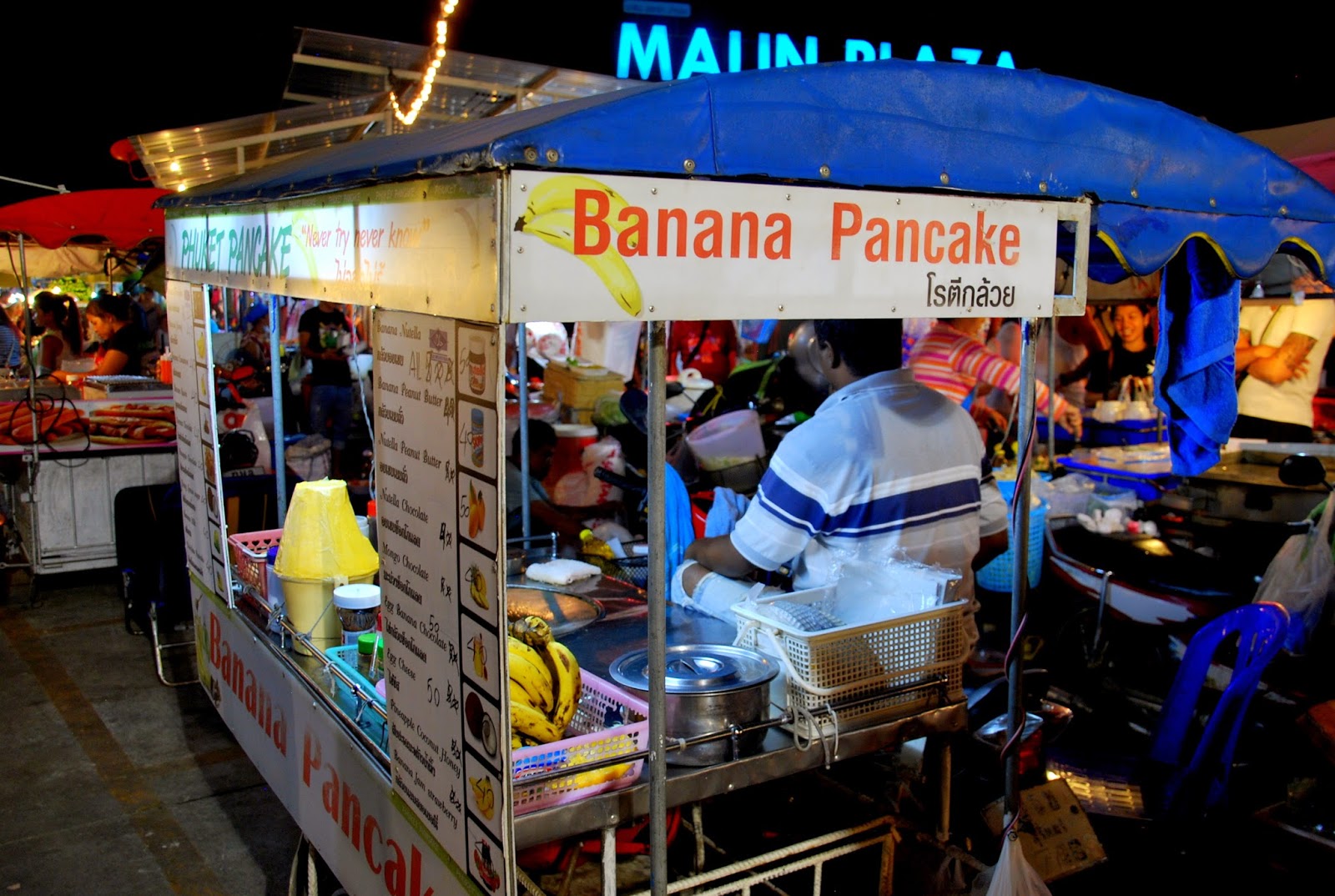 Nachtmärke muss man hier in Thailand nicht suchen, sie finden dich! Ich war auf dem Roller auf dem Rückweg zum Hostel und hatte mich verfahren. Anstatt dessen fand ich den Nachtmarkt am Malin Plaza in Patong vor mir. Der Geruch von frisch gebratenem Fleisch liegt in der Luft. Jetzt da die Temperaturen abgekühlt sind, die Nacht angebrochen ist, erweckt Phuket zum Leben. Auf dem Markt bauen etliche Menschen ihre Stände auf- Abend, für Abend. In Thailand sind Garküchen auf der Straße keine Seltenheit. Vor Allem in großen Städten wie Bangkok, in denen Platz rar ist, haben viele Familien keine eigene Küche. Leben auf engen Raum zusammen und haben meist nur einen Raum in der die ganze Familie schläft. Da nicht selber gekocht werden kann, bieten etliche Straßenstände die unterschiedlichsten Speisen, die meist erst bei Bestellung frisch zubereitet werden, an. Aus der Not wurde eine Tugend gemacht.