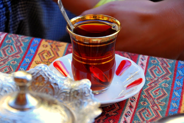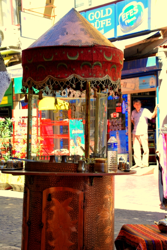 I was very happy to find a lot of cute, little cafés in Turkey. They are having small, nice looking tables and very small chairs outside on the streets and you can choose between very strong, black coffee or chai (Turkish, black tea). Both of them are served with water on the side and lots of sugar. I am pretty sure that you are able to order a shisha in those cafés as well.