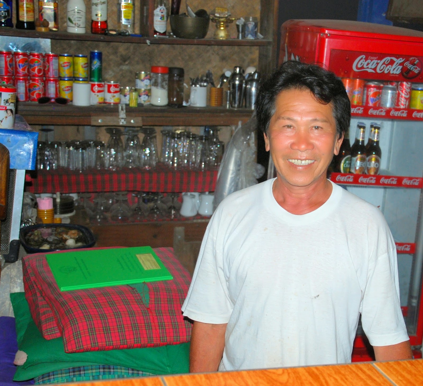 The owner of the bar realized that I was trying to find a good spot to take a picture. With the few words he know in English and with sign language, he showed me where I should stand. A bit later he told me that he just opened the bar a few months ago together with his family. He asked me if I could take a picture of him, which I did. When I asked him if the bar has a name already, he was shaking his head. We started to think about a name. “What about sunset bar?” he asked me. I agreed and when I started to drive back to Patong, the entire family waved goodbye.