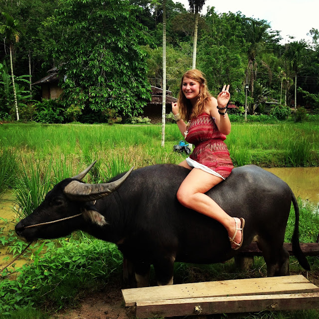 The first thing Í did was a “typical Thailand-day”. It was a package of several activites that are typical Thai. The package included: Thai boxing, Thai cooking, Elephant riding, canoeing, Ox-cart riding, rice farming, an elephand show and a monkey show followed by dinner and a visit in the fish spa. The price for that was 30 Euros and included transport.