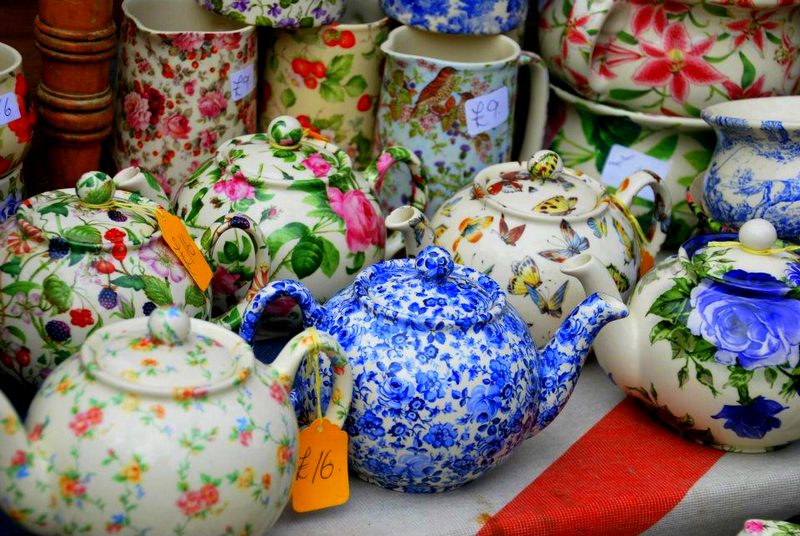 It has grown to London’s most loved market and Portobello street is filling with thousands and thousands of tourist and Londoners every Saturday. The first part of the market is the vintage fashion market, where people can find clothes and accessories from different decades or well-known brands for a cheap price. This is followed by a section of new clothes (mainly print shirts and dresses), cosmetics and souvenirs, continued by fruit and vegetable stalls, food stalls selling food from all over the world, flower stalls selling beautiful bouquets. The last part is the antique market; stalls are selling furniture, tea sets and plates, old books and music records.