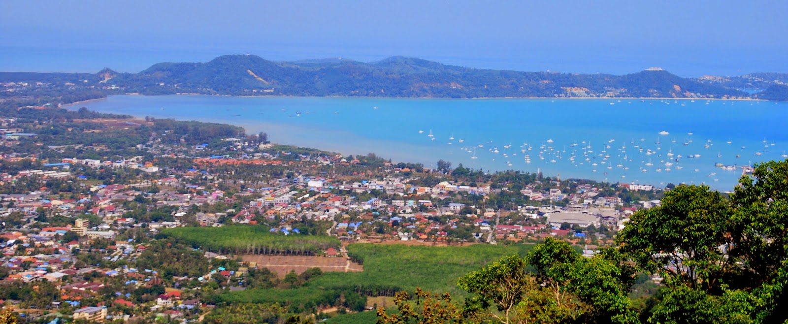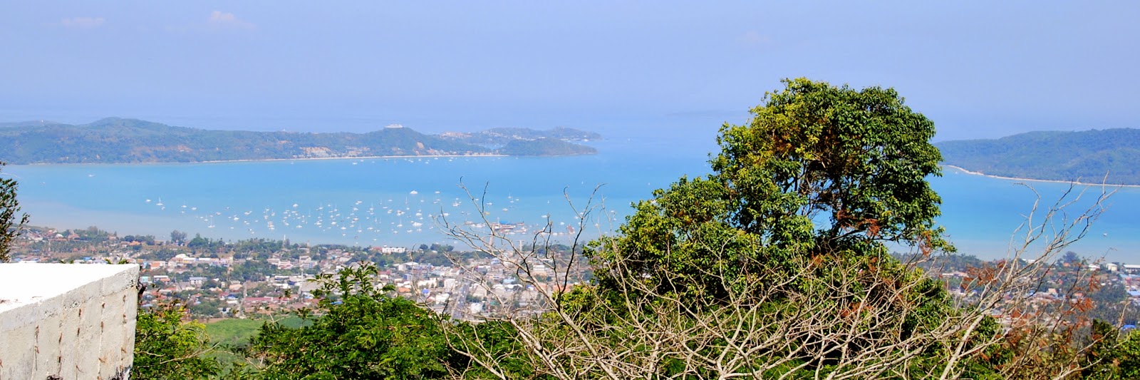 Von hier oben hat man einen tollen Blick auf die Strände von Karon und und die Chalong Bucht. /From up here you have a gorgeouse view over Karon and Kata Beach and the Chalong Bay.